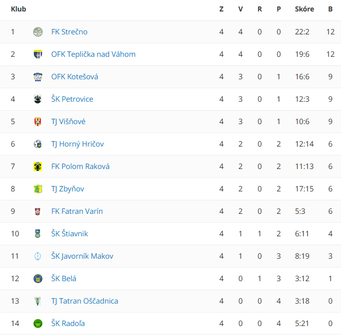 Tabuľka V. liga, ročník 2025/2026 SsFZ sk. A